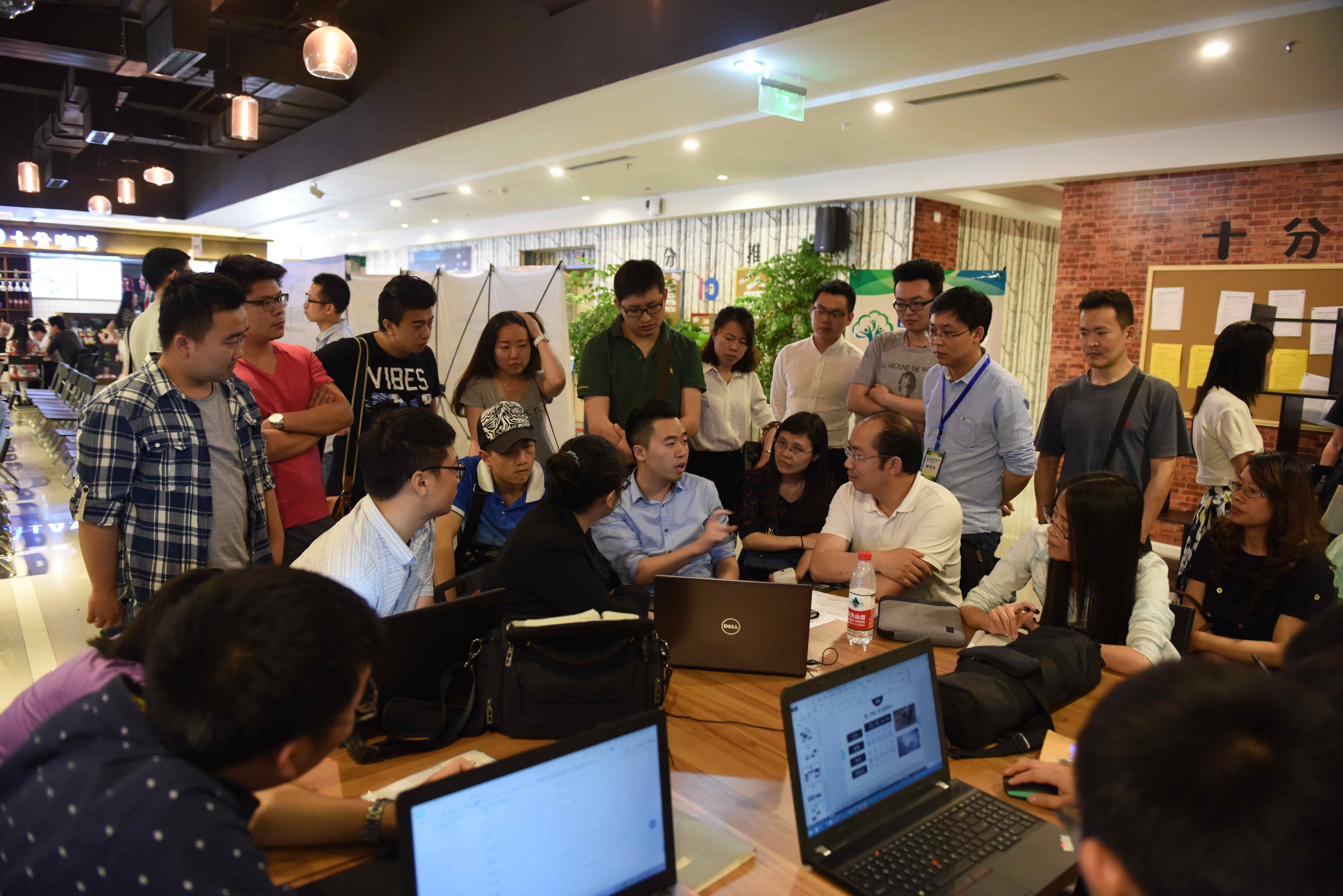在一分钟的项目推介后,22个团队分成4组,每组导师对项目进行一对一的辅导,修改PPT或商业计划书,其中有6个项目从22个项目中脱颖而出并进行了第二阶段的模拟路演。