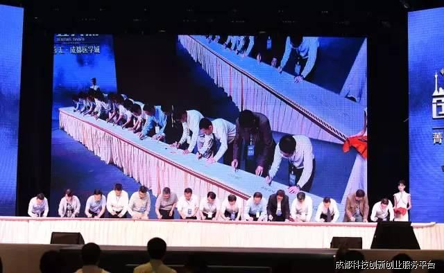 现场,签约项目代表一起在签约卷轴上签名留念,也在“创业天府?菁蓉汇”的卷轴上添上了温江浓墨重彩的一笔。