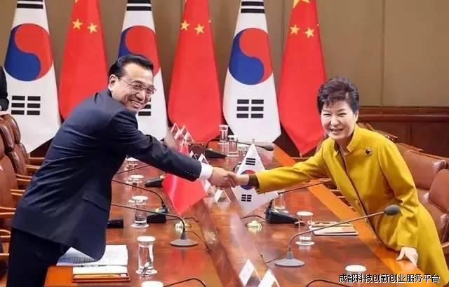 2015年10月31日,国务院总理李克强在韩国首尔青瓦台同韩国总统朴槿惠举行会谈。会晤中,李总理指出,将搭建青年创新创业、共同开拓第三方市场两个合作平台,发挥政府引领作用,为双方合作提供更好保障,在中国成都设立中韩创新创业园。
