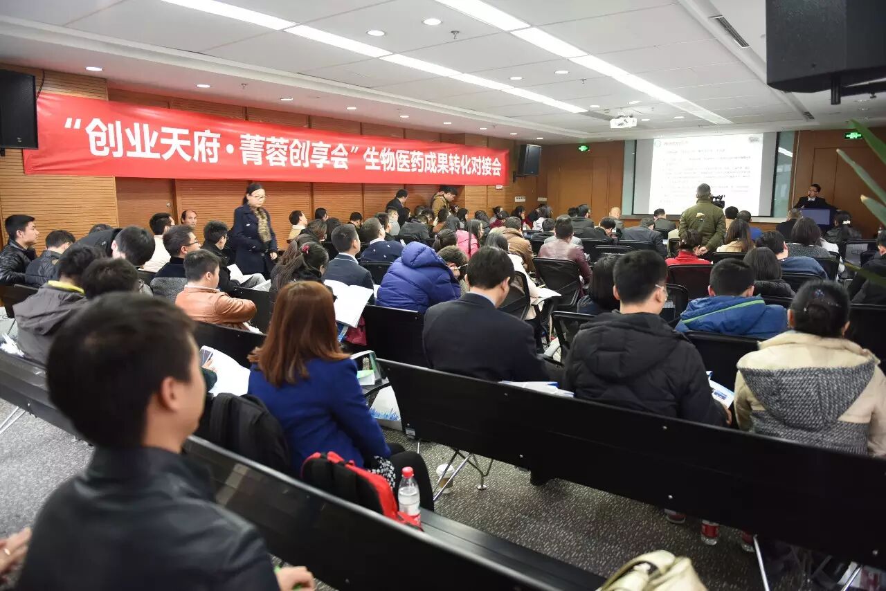 2015年12月17日下午,由成都市科学技术局主办、成都技术转移集团、成都生产力促进中心共同承办的“创业天府·菁蓉创享会——2015校院地协同创新生物医药成果转化对接会”在盈创动力大厦5楼培训中心成功召开。来自生物医药领域高校、科研院所、技术转移及投资机构共计50余家单位代表参加了会议。