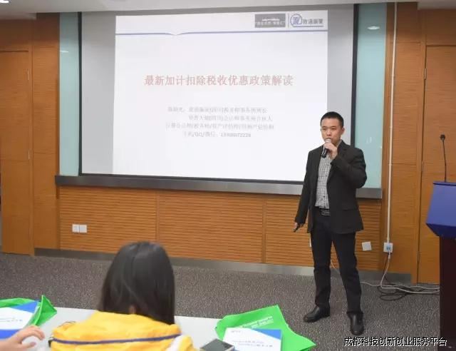 原来,最新的加计扣除税收优惠政策2016年1月1日就要开始执行啦,成都市科学技术局主办,成都生产力促进中心、四川省软件行业协会、成都高投盈创动力投资发展有限公司承办了今天的这场创业天府·菁蓉创享会,专门请来了男神给大家解读“最新加计扣除税收优惠政策”。